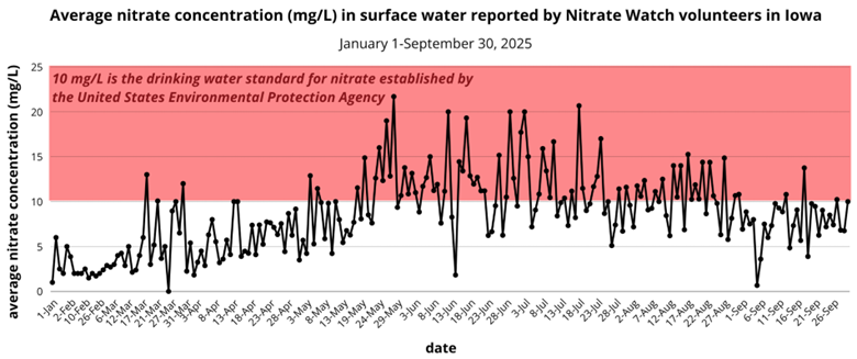 EPA steps in to remove stream segments from Iowa’s impaired waters list. Under the Clean Water Act, states are required to identify waters that are not suitable for their designated uses, such as swimming, fishing or supporting aquatic life, due to pollution. Once listed, states develop specific pollution reduction strategies focused on contaminants, such as nitrate, identified by the state. In August, the EPA took the uncharacteristic action of rescinding its previous decision to add seven stream segments to Iowa’s impaired waters list. These segments, including parts of the Des Moines, Raccoon, Cedar, Iowa and South Skunk Rivers, are known to have nitrate levels that frequently exceed the drinking water threshold of 10 mg/L.