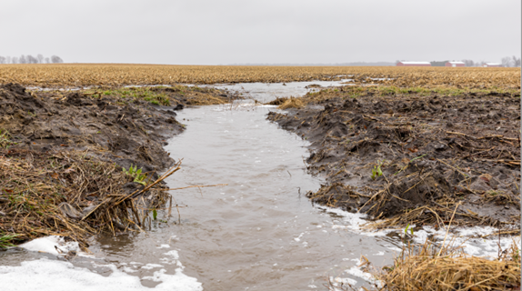 Many of the best practices to mitigate nutrient pollution focus first on the soil. Conventional agricultural practices strip soil of its organic material and decrease its ability to retain water. When it rains, water moves quickly off the field—taking nutrients with it and causing erosion—instead of infiltrating through the soil as it should. Unhealthy soils also necessitate higher use of fertilizers, adding to the problem.