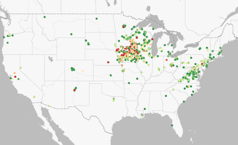 Summary statistics from the Nitrate Watch 2025 annual report are shared in reporting from Axios Des Moines. These statistics tell as story of high nitrate concentrations in waterways across Iowa as well as increased awareness and interest in documenting this pollution problem throughout the state in 2025.