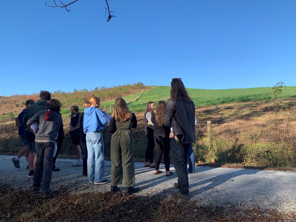 During the hike, the students talked a lot about nitrate pollution – what it is, why it matters, and how it connects to both environmental and human health. They also discussed the difference between point and nonpoint source pollution, and the potential effects of different land uses they could see in the Piney River watershed. “Students were quick to point out how agriculture, forests, and residential areas might all play a role in the river’s nitrate levels,” Grace explained, “It helped make the watershed feel more real and less like something that only exists in a classroom diagram.”